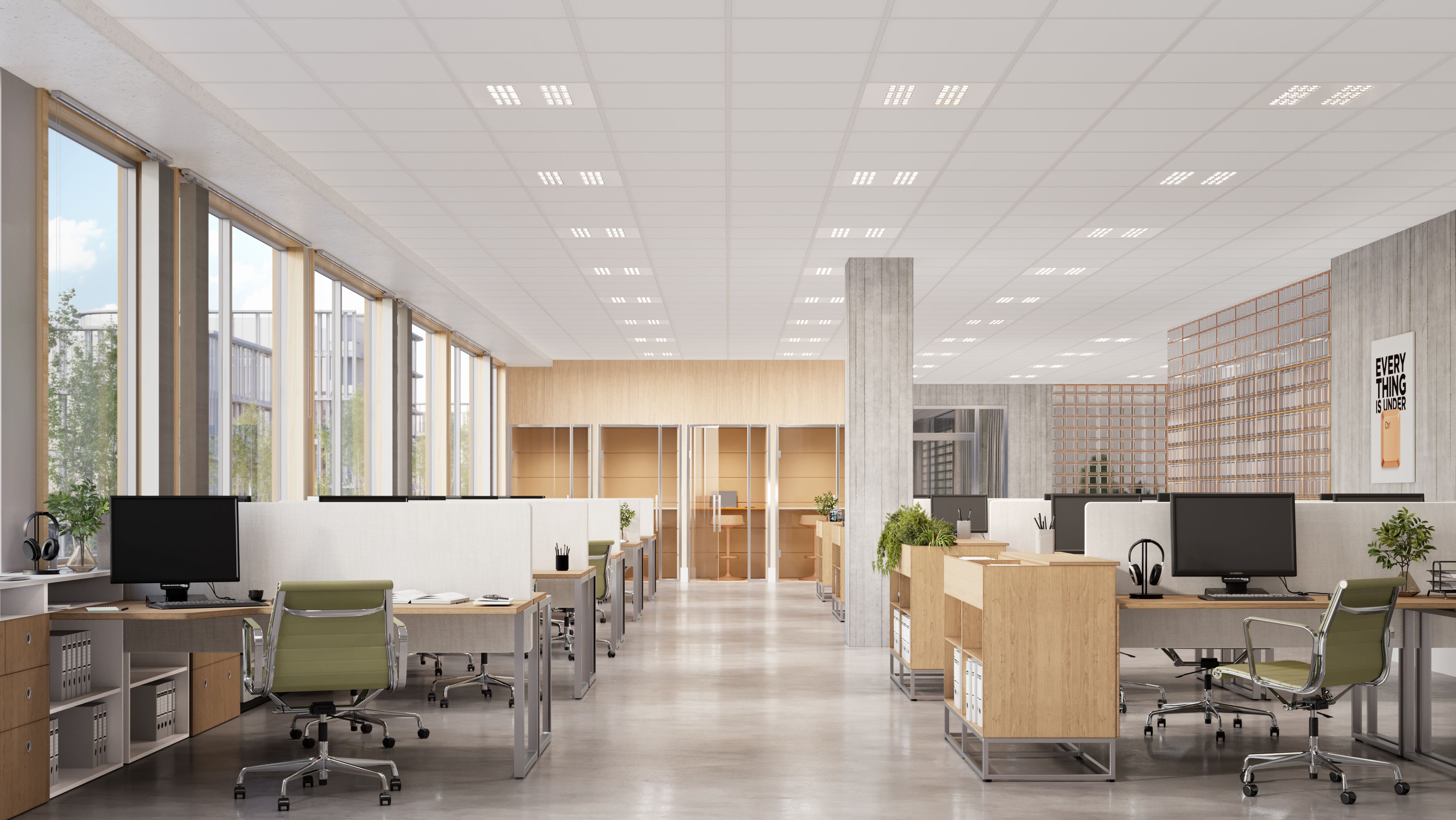 Die GEO 4 Boost Office eignet sich für den Einsatz in Büros, Konferenzräumen sowie Gewerbeflächen. Die hochwertige Boost Raster Optik sorgt für eine blendfreie, angenehme Lichtverteilung (UGR ≤ 19) und hohen Sehkomfort. So erfüllt die Leuchte die Anforderungen an normgerechte Bürobeleuchtung – zuverlässig und dauerhaft im täglichen Einsatz.