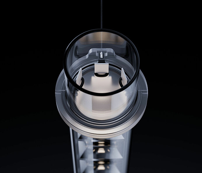 SALT è un esempio impressionante di funzionalità e brillantezza estetica. Con il suo alloggiamento in vetro chiaro e trasparente, l'apparecchio non solo porta una luce eccellente in qualsiasi ambiente, ma sottolinea anche in modo perfetto ed elegante i suoi dettagli tecnici. Grazie alla conduzione della luce di alta qualità attraverso l'ottica a lamelle appositamente sviluppata, offre un affascinante effetto visivo sia da acceso che da spento.