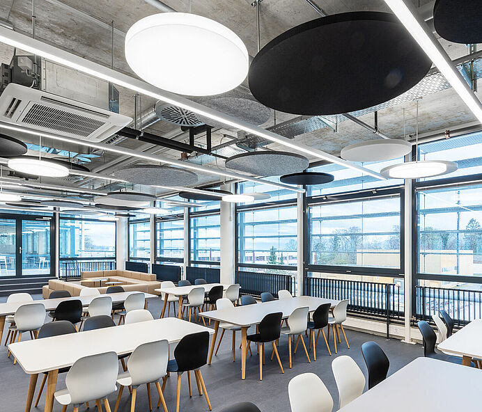 Für moderne Arbeitswelten empfiehlt sich MILANO SLIM Office: Die nach EN 12464-1 geprüfte mikroprismatische C-LED Optik (UGR < 16) sorgt für perfekte Entblendung und ein angenehm ruhiges Licht – für Konzentration, Produktivität und eine professionelle Raumwirkung.